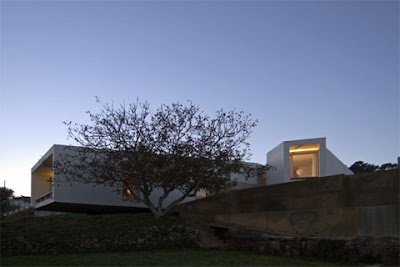 Great residential project by ARX Portugal that is locaed in Romeirão, Portugal. The house is facing south over the valley, furrowed by a small river and a mountain in the background.